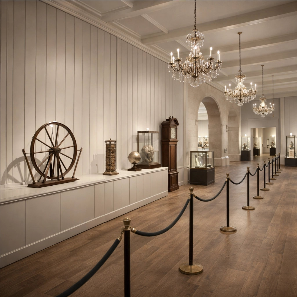 une mise en lumière pensée pour le patrimoine renforce l'immersion et la compréhension du parcours (ambiances, étapes du récit, lecture des espaces). Les dispositifs sont ponctuels, maîtrisés et sécurisés, avec une implantation réversible. Lorsque des œuvres ou pièces sont présentées, les choix d'éclairage sont adaptés aux contraintes de conservation (intensité, durée d'exposition, sensibilité des matériaux).